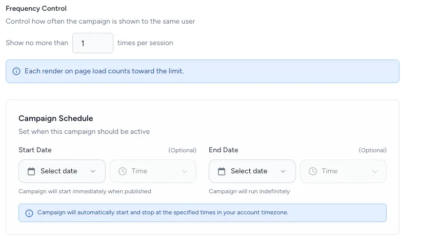 Frequency Control: Adjust how many times the campaign can be shown to a single user in one session.